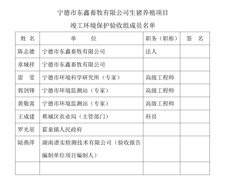 附:寧德市東鑫畜牧有限公司生豬養(yǎng)殖項目竣工環(huán)境保護驗收組成員名單2017年10月27日